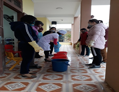 Trường Mầm non Tân Việt thực hiện công tác phòng, chống bệnh viêm đường hô hấp cấp do chủng mới của vi rút Corona.