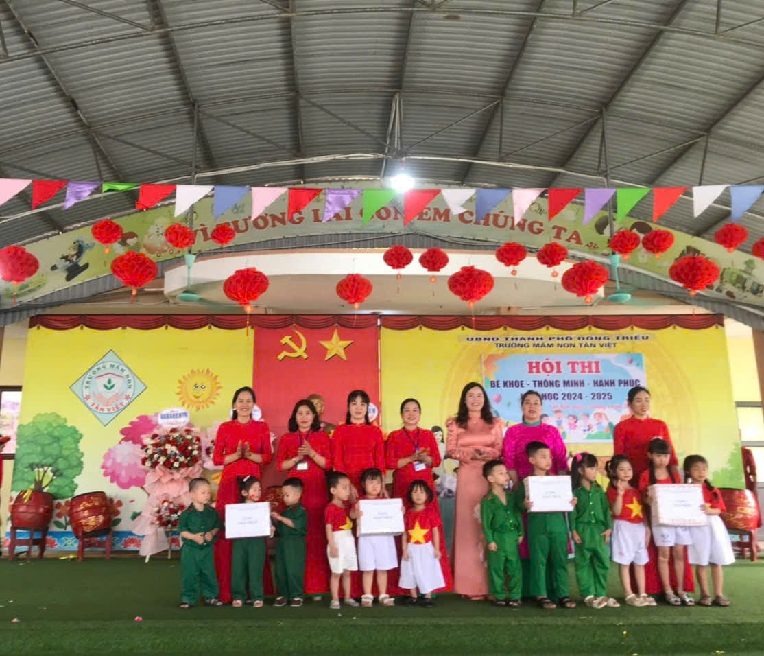 Sáng ngày 25/04/2025 trường mầm non Tân Việt Long Trọng tổ chức hội thi "Bé khỏe- Thông minh- Hạnh phúc" năm học 2024- 2025. Chào mừng 50 năm giải phóng Miền Nam thống nhất đất nước 30/4/1975- 30/4/2025 và Quốc tế Lao động 01/05